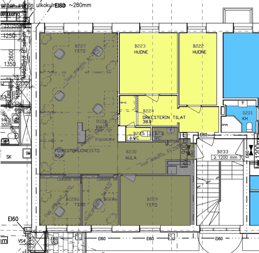 Toimistotilaksi sopiva huoneisto, 38m2 (pohjakuvassa merkitty keltaisella). Aula, minikeittiö, wc-tilat ja kaksi huonetta. Käynti Kauppakeskus Tawastin Versonraitilta. Ikkunat Kauppalaiskujalle, josta sisäänkäynti 24/7 porrashuoneen kautta. Lisäksi sähkö, vesi ja mahdollinen markkinointimaksu.